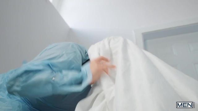Malik Delgaty's wife is delivering, but when he notices the OB is wearing nothing but a jock strap under his gown, he finds himself distracted from holding her hand. The unprofessional medical professional, Alex Mecum, grinds on Malik's dick, then pulls the expectant husband behind the curtain to suck his cock. As the nurse calls him back in, Dr. Alex gets ready to catch and Malik gets behind him and fucks him doggystyle while the women are none the wiser. They take the opportunity to sneak into the next bed where Alex rides Malik, then the top fucks the doc missionary till he cums and jizzes on Alex's face.