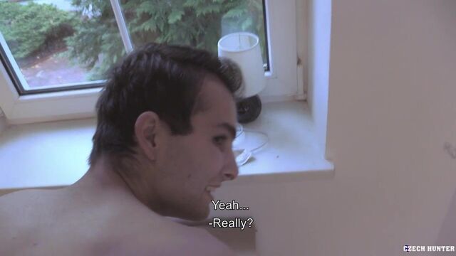 - Description: Getting a tan in the middle of autumn is difficult. That’s why I decided to visit a tanning salon and then maybe have some fun. While looking for the place, I met a very busy man. Through the garage door, I could see various household appliances he was fixing. It was obvious I would bother him, but I wanted to chat. The guy seemed open-minded enough, so I tried my luck and made him the usual naughty proposal. The dude laughed but agreed. In fact, he had some experience from his younger years. We took advantage of the house being empty. My new friend took me to the spare bedroom and tried to earn every Crown I promised him. He almost looked like having fun sucking my horny cock. Getting fucked was a different story. His inexperienced asshole had to be stretched a lot, but it didn't prevent him from cumming.