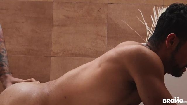 Luciano and Peter are two hard, horny tattooed studs who want nothing but to get their throbbing cocks off in the spa bathroom. As soon as they spot each other they waste no time showing off their bodies and eagerly worship their tight holes and thick dicks. The two dark-haired men fuck hard in the bathroom before heading to the bedroom, moaning as they slam their athletic bodies together and push themselves to the limit on their way to their two explosive cumshots.