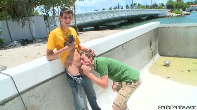 Mike King and JT Knightly met up at the park on a nice sunny day. Horny and young as they are, they search for a nice secluded spot to get their freak on. We find a house that's under construction; a perfect spot out on the bay. These two waste no time. Pants drop and cocks get hard. Next thing you they're fucking in broad daylight. No shame in their game. These guys fuck for quite sometime. All for the love of Out In Public.