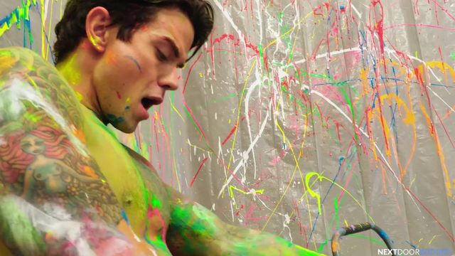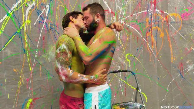 Dakota Payne and Johnny Hill keep it colorful in this fun and flirty scene. As if painting wasn't messy enough, they get down and dirty with some smoking hot sex.