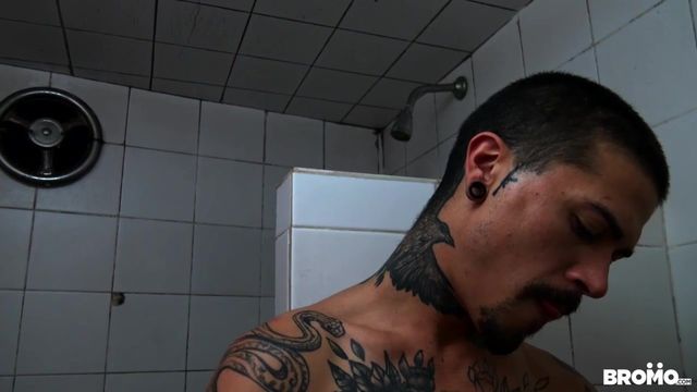 - Description: Kendro spots the hung and horny Milo in the locker room and likes the look of his long hard cock through his towel. The two tattooed studs stroke and rub each other, tugging on their nipples while they jerk their cocks together. Kendro takes Milo's uncut cock in his mouth, giving him a long wet blowjob on the floor of the locker room before Milo pushes him into a chair and greedily returns the favor. Kendro slides his cock into Milo's tight ass, making the bearded hunk moan as he takes Kendro's fat cock all the way inside. Kendro rides Milo, letting him fuck the cum out of him. Before they're caught the pair move to the showers where Milo shoots his thick load all over Kendro's hungry face.
