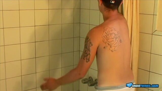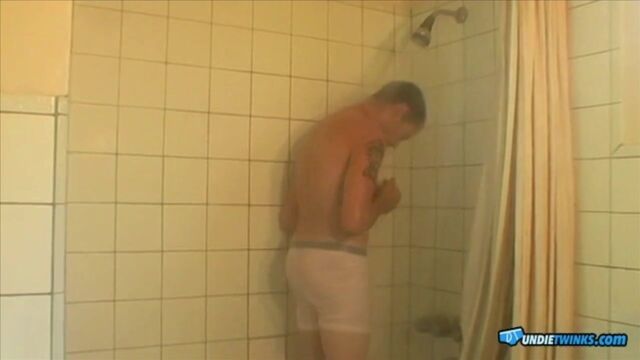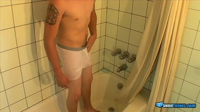 Skater cutie Grant strips down to his white boxerbriefs and takes a shower, AMAZING cum shot through his undies! Sorry about the audio, I accidentally turned the mic off but this video was too hot not to put up, enjoy!!