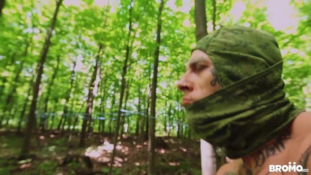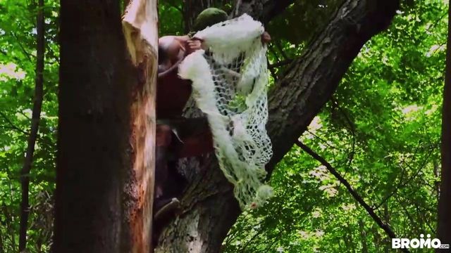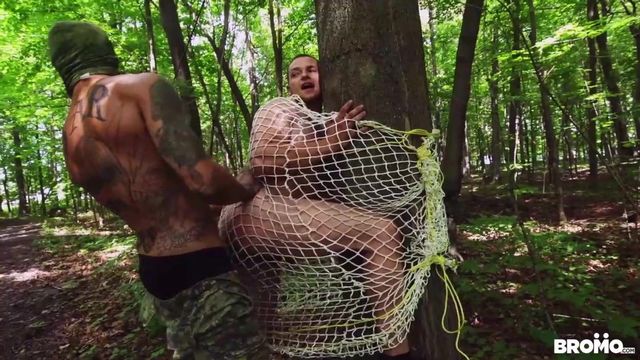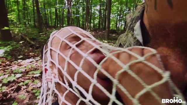 When the hulking hunter Bo Sinn spots Oliver Smith taking a casual stroll through the woods he'll stop at nothing to get the cute twink gagging on his cock. Bo climbs a tree and throws a net down on the unsuspecting bottom then hurries down to give the cock hungry slut what they both know he wants. Oliver greedily takes Bo's cock down his throat, sucking as much of it as he can before the merciless top bends him over and shoves his enormous dick into Oliver's ass. Oliver loves every second of being caught in Bo's trap, moaning with ecstasy as his hole gets used until Bo blows his huge load all over Oliver's face.