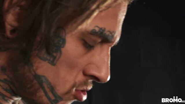 Sean Peek waits with his ass in the air, his legs spread and hole eager to be used by Bo Sinn. The tattooed hunk arrives and immediately starts finger fucking the hot and ready slut. Bo lets the hungry sub gag on his cock, laying back and making Sean work to show how badly he wants to get pounded. Bo gives Sean the merciless fucking he deserves, thrusting his massive cock all the way into Sean, brutally plowing the dark haired bottom until he can't take it anymore and has to bust his nut.