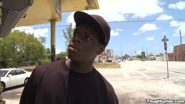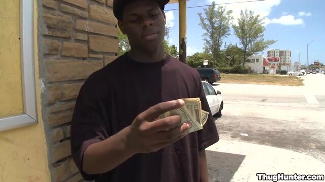 - Description: What happens when you wander the hood with an expensive camera and a white skinny dude? You go thug Hunting! Or latest victim was a unsuspecting chump who was hanging in front of a meat market, go figure. We started talking and he was just hostile from the get. That is until we started waving money in front of his face then he was a willing recipient. We asked him if he had been in jail and found out that it was a sore spot for him. So then we flashed a couple more hundreds to find out more and took him to a special spot to find out more..Turns out that he got turned out in jail, because he really knew what to do with a dick in his mouth. And when it came to taking it in his ass, he used all his hostility that he had towards us in the beginning to go at that shlong until he made home boy cum on his black ass.