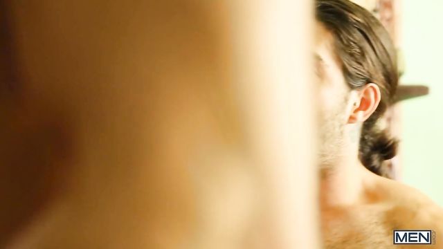 On their second day in the Rental House, Colby Tucker stays home while the boys go out to find some breakfast. While the blonde stud is trying to take a shower he starts finding mysterious messages from the creepy property manager (still Diego Sans). Colby is aroused by Diego's unconventional advances and is quick to drop to his knees and service the hung and horny groundskeeper. Diego lets Colby take his cock all the way to the back of his throat, fucking the tall stud's hungry mouth before he bends him over and toys with his tight ass. Diego slowly and deliberately fingers Colby, getting his hole ready for the furry chested hunk's rock hard dick. The perverse proprietor pounds Colby, making him moan and whimper until he can't take anymore and blows his load all over himself.