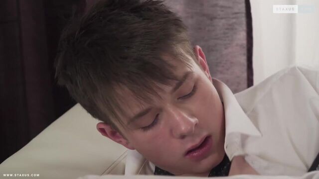 Man cannot live on bread alone – so the good book says. But let’s face it, when it comes to hot, well-hung twinks there’s definitely only hard cock on the menu, as Connor Rex and his spiritual mentor, Mike Fontana, are here only too eager and happy to demonstrate! Indeed, these two young beauties can’t wait to put their frugal meal to one side so that they consume something far more fulfilling; indulging in some passionate smooching together, before energetically ripping away at each other’s clothes so that they can feast on the generous platter of dick that’s nestling away in their trousers.To be frank, if the sight of suited and booted beauties indulging in hardcore fellatio is your kind of entertainment then there’s every possibility that you could’ve blown your proverbial gasket a long time before Rex finally takes aim at his buddy’s pert little arse. But those of a more restrained nature will be rewarded by the sight of the cheeky favourite giving Fontana’s pucker a rigorous rimming, before shafting his mate good and proper with the full, uncut length of his gorgeous joystick.It’s a move that his horned-up buddy seems to appreciate, that’s for fuckin’ sure; as Fontana ably writhes and squirms with pleasure on the end of hard cock like it was his one and only destiny. Indeed, we hazard a guess that it’s not so much his salvation he’s contemplating as he bounces up and down on Rex’s lap, but rather how much longer he can hold off from spewing like a fountain! A task he ultimately (and predictably) fails at; prior to gobbling at his pal’s dick as it violently erupts!