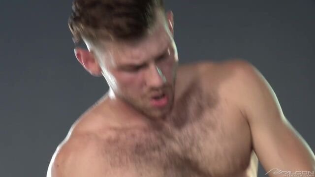 When Jacob Peterson auditions for a job as a private dancer, Jimmy Durano tells him, 'Your job is to make me cum.' Jimmy likes the overall package, but Jacob needs coaching, so they trade roles. Jimmy strips to his jock strap and begins to demonstrate. His smooth muscles glint and ripple, And his body language is but a single word: seduction. Jacob squirms awkwardly, wanting what he sees, but unsure whether to touch. Jimmy makes the decision easier by displaying a massive, curving erection hard and ready. He grabs one of Jacob's furry pecs and nods for him to suck. Now Jimmy wants Jacob's tight, firm ass, starting with a deep, wet rim job that leaves Jacob panting, and his hole lubed and relaxed to take a big, fat cock. Jimmy jumps on top of him, throwing Jacob to the ground, skewering him all the way in and out. Now, Jacob sits on Jimmy's cock, leaning back and closing his eyes in some private cum fantasy, then dismounting to eat Jimmy's huge load. He's done his job, and they enjoy a hot make-out session.