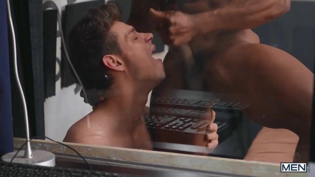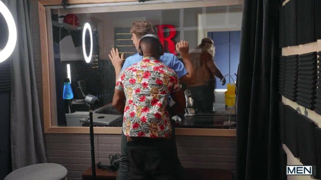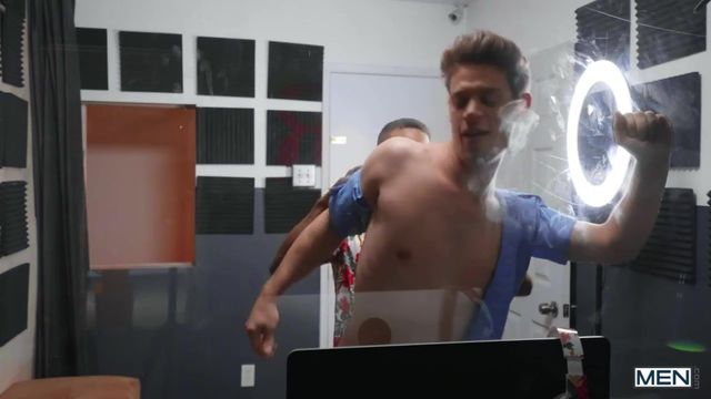 Janitor Michael DelRay gets a little star-struck and asks singer Adrien Hart for an autograph on Michael's perky butt. Adrian's recording session isn't going so well, until Michael sneaks in and starts sucking his cock. The producer catches him and orders the janitor out, but instead Adrian puts him up against the window, motorboating that firm ass before sliding his cock into it. Michael rides the sexy singer and Adrian sucks the bottom's dick, then pounds him doggystyle some more before rimming him. The top fucks Michael missionary, making him cum with his powerful rhythm, then autographs the bottom's face with his load!