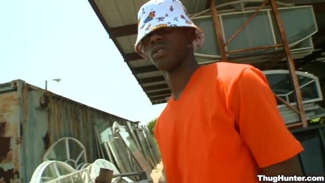 - Description: Ain't nothing better then thug hunting in the junk-yard. And we sure found us a thug. Kind of hard to miss him. he was dressed out in some bright-ass clothes, but that chocolate skin looked mighty good in the sun. Especially when he's on his knees sucking cock and legs up in the air getting banged out by our little homie. Thug hunting ain't easy. Peace!