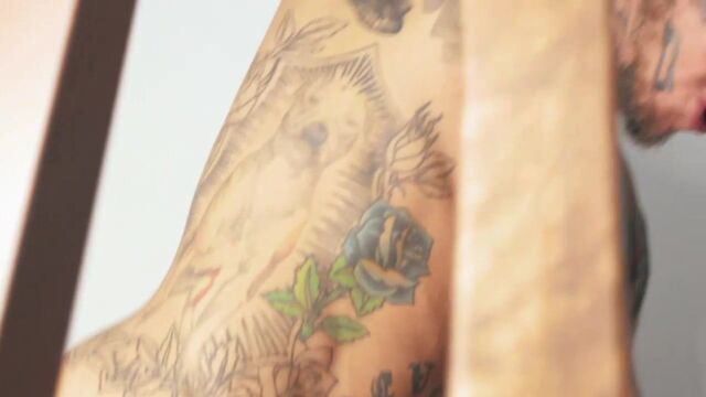 Tattooed Bo Sinn fucks bald Edan Wolf on the stairs - Bromo US