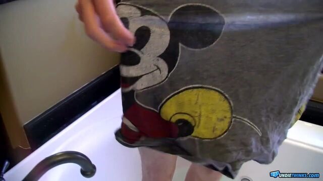 Smooth and sexy Dustin Fitch heads to the bath in his Micky Mouse boxer briefs and hops in to stroke his big thick cock! After stroking in the warm water, Dustin hops out, strokes in and out of his undies and shoots his load through them!