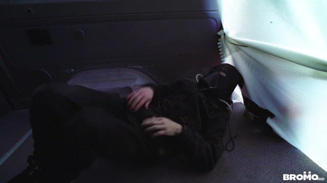 Tony's walking down a deserted country road when he sees strange masked man Majk drive up in his van and pull over. Majk installed a special gloryhole at the back, so Tony stickes his cock through and Majk sucks it. Tony gets in the van to fuck Majk doggystyle, then undresses the masked bottom and fucks him spoon. Majk cums as Tony holds his throat while pounding him from behind, then the top fucks Majk's mouth and jizzes on his mask.