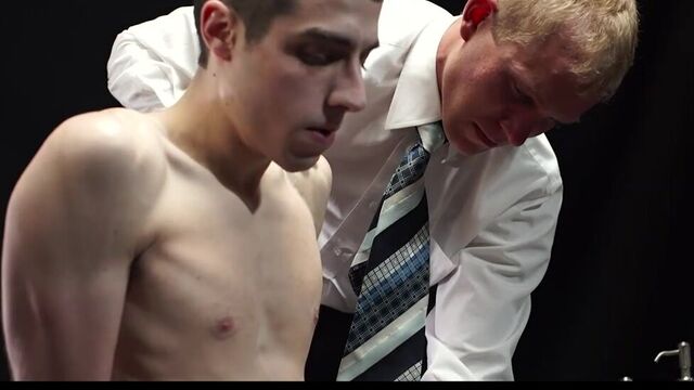 As Stepbrother Daniels and Stepbrother Johnson bring in the priesthood stretcher, Elder Ricci runs his eyes over the bench. He doesn’t have to be told what it is for. He looks at Patriarch Smith and gets confirmation from the twinkle in the man's eye. They want him sit on these pegs. He looks again, trying to measure them with his eye and decide if he can get them to fit in his relatively inexperienced hole. He is captivated by this perverted contraption. He’s intimidated but also excited to try it. But above all else, he is eager to prove himself worthy of Patriarch Smith's trust and respect. Patriarch Smith breaks the uncomfortable silence. "Stepbrother Johnson, help Elder Ricci out of his clothes." Stepbrother Johnson drops to his knees and takes off the boy's shoes and socks, then slides his pants down to the floor. The man's face is a breath away from Ricci’s big cock, and he looks at its outline in his sheer underwear. Then, slowly, Stepbrother Johnson pulls Elder Ricci's underwear down, and takes in the beautiful site of the boy's dick, which is already beginning to get hard because of the attention. Stepbrother Johnson oils the first peg, then takes Ricci by the arm and leads him over. He has seen plenty of missionary boys struggle to conquer the priesthood stretcher. He knows the boy probably won't be able to finish -- they never can, the final plug is just too fat. But he loves watching them try. Naked and faced with this contraption, the speechless Elder Ricci hesitates. He's embarrassed to be standing buck naked in front of his leaders, and anxious about the impossible task. But he's not going to give up without a fight. Slowly, he lowers himself down on the first peg. It's firm rubber and it makes his head swim as the peg pushes into his ass. But once he gets over the initial shock, he finds it's not so bad. The phallic plug is pushing up against something inside his butt that feels great. As soon as it's all the way in, he squirms on the bench to get the most out of it. The peg is hitting his young prostate, and the boy moans loudly. Maybe this challenge will be fun after all.