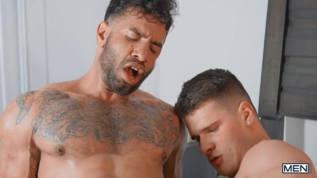 When his roommate Mateo Zagal's Sexercise workout interferes with his game, Malik Delgaty is annoyed, but not as annoyed as when Mateo strips off all his clothes and waves his dick around as he sexercises all over the house! Mateo is angling for a workout partner, so Malik finally gives him what he wants, carrying him to the bed and spanking his ass before feeding Mateo his dick. Malik fucks the bottom doggystyle, then lies back to let Mateo get his sweat on as he rides him. Malik gets his own workout as he fucks Mateo hard, working his arms as he strokes the bottom's dick till Mateo orgasms, then cumming in the bottom's mouth.