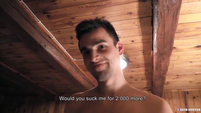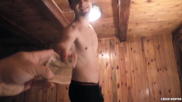 A few months ago, I bought a nice cottage in the countryside but was too busy to spend much time there. That's why I decided to take a few days-off and start discovering interesting landmarks in the area. My first hiking trip was short. Before I got to the destination, I met a dude gathering wood right next to the trail. His girlfriend and he lived in a small house nearby. I really liked the guy; he was cheerful despite having a lot on his shoulders. His girlfriend was pregnant, so money was about to get very tight. Well, that was something I could help him with. Luckily, she was at work, so we slipped in their house. They had a nice spare room, where we could have some fun. To be honest, the guy was having plenty of fun. His girlfriend should keep her eye on him just to be sure.