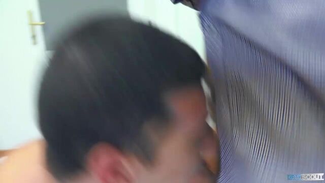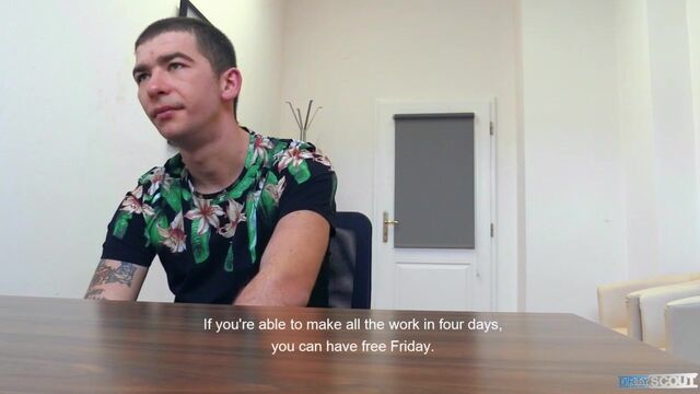 This young man had a bit strange set of hobbies. He liked IT and coding simple computer games, that was kinda cool... but he also liked selling insurance. That was a bit weird for a guy like this. Well, he really liked finances and I definitely had a few jobs like that open. This guy was rough looking, but qualified, and enthusiastic... fortunately, he was also broke. He couldn't pay our 5 000 Crowns mediation fee so I tried my tricks on him. I was horny so I didn't beat around the bush. My help was worth a blowjob. After a moment of shock, he agreed. Swallowing my dick like nothing, this dude was ripe for me stretching his ass wide open. I paid him and he was on his back in a second. I love how some people are ready to whore themselves out. Especially when they see my cock is quite big.