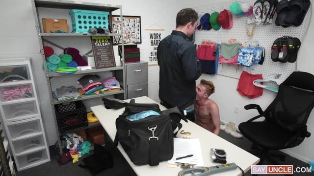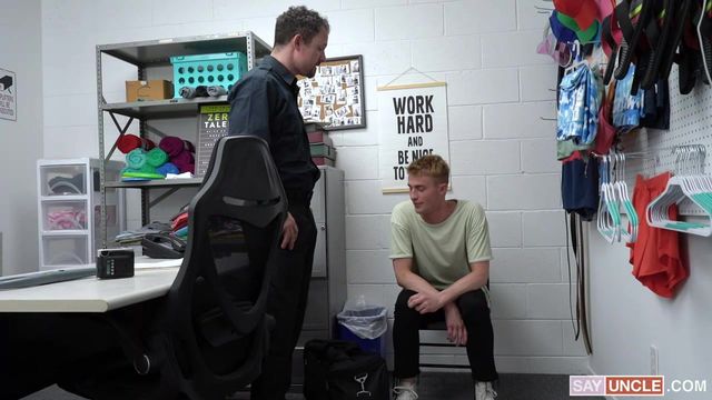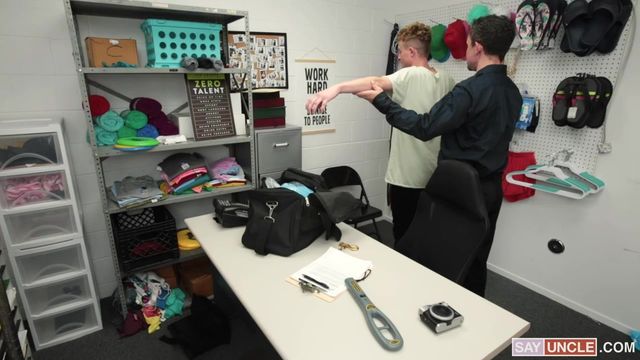 Security officer Jesse Zeppelin brings suspected thief Braden Taylor into the backroom to confront him. Braden denies being guilty so officer Zeppelin submits him to a strip search and a deep cavity search, one that will leave Braden questioning his sexuality!