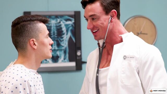 - Description: After Cade Maddox shows up to the doctor's office for his appointment, he gets restless waiting and sneaks off to one of the exam rooms. Surprisingly, Cade walks in on Eric Rey, who mistakenly thinks Cade is the doctor. Deciding to take advantage of the situation, Cade grabs a lab coat and starts to examine Eric. While examining Eric's ass, Cade sneaks a finger in Eric's hole, which is quickly replaced with Cade's tongue. After loosening Eric up with a deep tongue drilling, Eric turns around on the table to get the fake doctor rock-hard with his mouth. Now that 'doctor' Cade is throbbing, Eric bends over and feels the instant stretching from Cade's inches in his ass bareback. Switching on his back, Eric holds his legs up while Cade pounds his smooth ass hard. When Eric wants control, he climbs on top of Cade and rides his cock hard and raw until Cade shoots a thick load all over his ass. Eric sits back on Cade's spent cock one last time and rides it until he shoots his own load that covers Cade's abs.