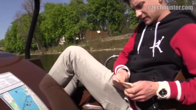 Finally a nice warm day in Prague. I decided to look for some outdoor action. I wanted to try new places to hunt and fuck. "Naplavka" used to be a dirty and depressing place near the Vltava river. But few years back, it turned into a very hip spot with crowds of cool young guys partying and eating local specialities. I started the day right there. After few failed attempts, I met a young lonely cutie waiting for his friend. An 18 years old student, no job, no money. Match. We chat a bit and then I invited him to a paddle boat ride. We had a great time relaxing and even jerking me off. He was too shy to do more on the small boat so we went to a football stadium at Strahov to finish the job. He played with my dick a bit and then the real fun started.