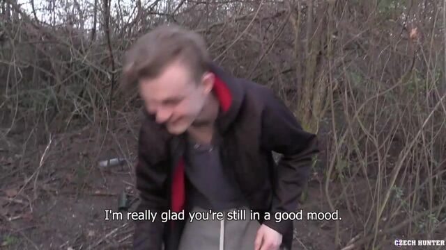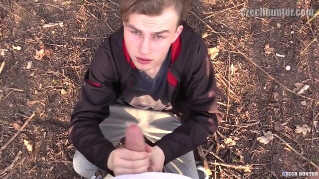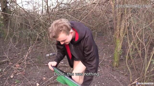 Subservient blonde guy takes a huge facial outdoors - Czech Hunter