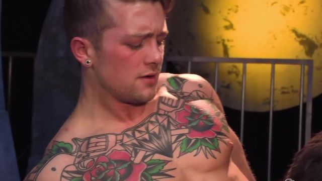 Pierre Fitch and Sebastian Kross are covered in hot tatts. They aim to tease each other, fondling their cocks and caressing their muscles, showing off their junk and hot muscle buns. It's a mutual jack-off at ten paces until Pierre crosses over to suck Sebastian. These guys are smooth and sleek, with rippling muscles and skin that glows. Sebastian pulls Pierre in for a kiss, licking the taste of his cock off Pierre's lips. Pierre gets a slurpy blow job in return. Pierre's bubble butt provides dessert, offering temptations for Sebastian's tongue and a warm sheath for his cock. Sebastian slaps Pierre's flanks while he fucks him doggy style, getting vocal encouragement from Pierre to pound him harder. A vertical flip, and Pierre is on his back, his legs spread so wide that Sebastian's insistent cock leaves no millimeter behind. Pierre still screams to be fucked harder, Sebastian grabs him by the throat, and the sudden loss of oxygen triggers Pierre's nuts to shoot their load. Sebastian palms Pierre's balls and coats them in sperm.