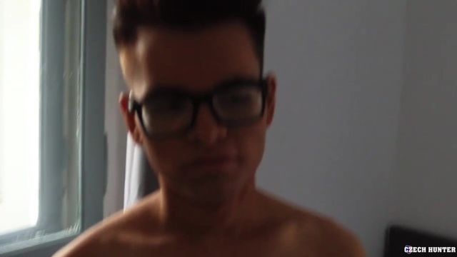 Nerdy twink with glasses bouncing on a cock in POV - Czech Hunter