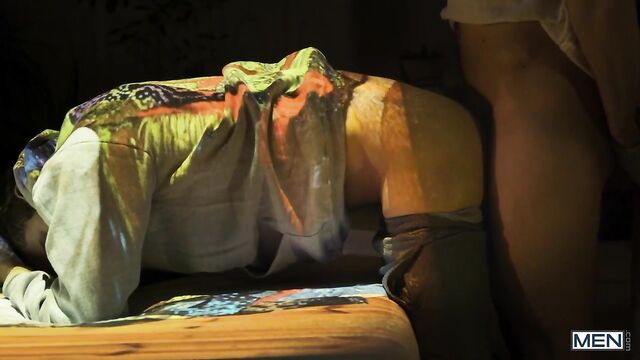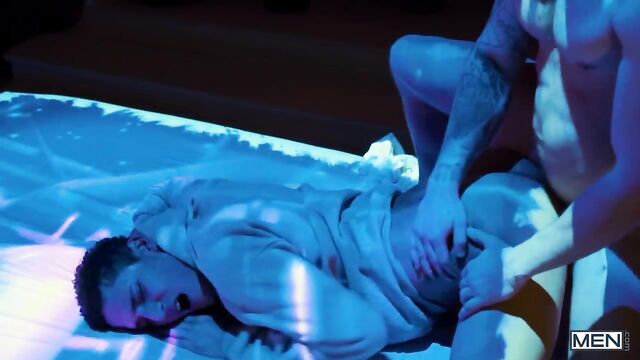 In this episode of Camp Chaos Matthew Camp recalls an encounter with a freshman in college, reminiscing about the softness of his skin, the crumbling basement floor and the sound of the furnace rumbling to life on a cold night in Upstate New York. After poring over the potential men to help him recreate the memory, Matthew decides on the sweet and sensitive Enzo. The two men take an intimate shower together, letting their bodies gently graze each other and washing each other's chests as they banter affably. When the time comes for them to meet in the bedroom the two share a tender and erotic encounter. Matthew slowly and intentionally fucks Enzo, making sure he feels every stroke as they try to recapture, however fleeting, the feeling at the heart of their memories.