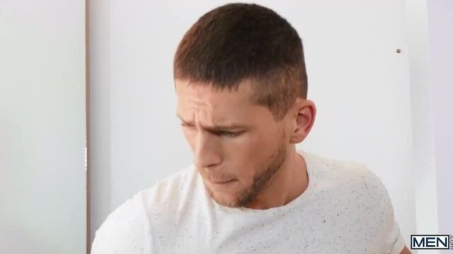 Roman Todd is ready to have a nice long self-pleasure session with his stroker, but first he has to steal his roommate's pricey hand lotion. When Blaze Austin knocks on the bathroom door, Roman tries to hide the evidence. However, Blaze quickly notices his hand cream is all gone... but Roman's cock is really moisturized! Roman tells Blaze he'll give him back his lotion if he turns around, but first Blaze pulls his bud into the bedroom and sucks his dick. Roman sucks the bottom's cock, then Blaze gets on top for a ride before Roman fucks him doggystyle. The top makes Blaze cum as he fucks him missionary, then pulls out to shoot his own hot cream all over him.