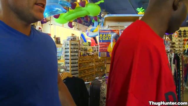 I got a call from a thug who was down on his luck. I told my boy Trace and we hopped in the car and scooped him up. Gotta capitalize on a Thug that needs money, because then you get'em in the palm of your hand. And Antwone was our latest victim. We took him to one of those local souvenir shops over at the Beach and found a secluded spot in the back to get nasty. Antwone sucks dick like a pro. Trace sure had a good time pounding his head into that clothes rack and pounding that ass in the couch..that is until the store clerk caught us ..oops!