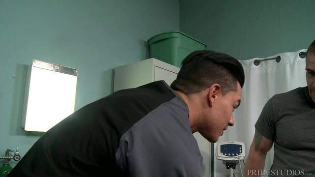 - Description: Adam is seeing his Doctor Ethan today for a routine checkup on his knee. Its been a few weeks since he's been able to run and hit the gym hard like he use too. Today should be the day he gets confirmation that he is good to go. Ethan does a very thorough check on his knee and hamstring. He has Adam take his shorts off but Adam isn't wearing any underwear which doesn't matter to Ethan since he's a Doctor anyways. Adam drops his shorts and reveals his hard cock. Ethan slowly makes his way up Adam's muscular thighs with his hands gently rubbing against his balls to perk Adam's interest. Adam doesn't seem to mind and so Ethan grabs his dick firmly with his hand and slowly strokes his hard throbbing cock. Adam is laid back loving each stroke and then he feels a warm mouth wrap around his dick. The Doctor is in and giving him the best BJ service he's ever hard. Ethan has Adam lay all the way down on the table while he puts a condom on and mounts his hard dick. Adam's dick is pointing straight up in the air as Ethan slowly sits down on his thick dick. Once deep inside he begins to ride and grind Adam making him moan and forgetting about any pain that may be left in his knee. Ethan eventually has Adam bend him over the table and fuck him doggy style until his ready to cum and wants to be flipped over on his back so he can bust his big nut. Adam has him on his back and Ethan let's all of this cum loose on his chest and once Adam feels that tight ass squeeze his cock as Ethan is cumming he pulls his dick out and cums all over Ethan's leg.