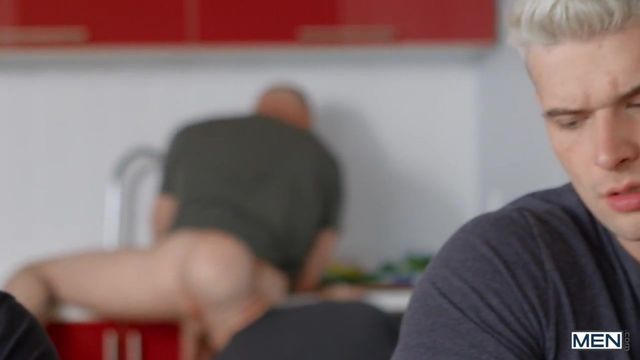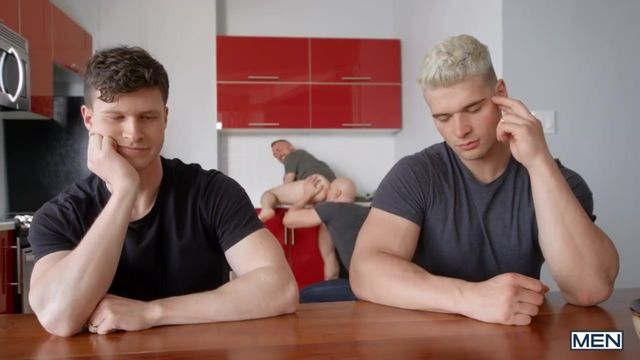 Jeremy London's trying to get dinner on the table for their guests, but his horny husband Travis Connor keeps distracting him, because he wants to have his ass for dinner instead. When Jeremy gets his hand stuck in the sink, Travis takes the opportunity to pull down his man's jeans and rim that hole behind the backs of guests Malik Delgaty and Finn Harding. After their hosts start fucking missionary on the table, the couple join in on the action, stroking their cocks as they watch Jeremy ride Travis's cock, then splitting up the pair. Jeremy sucks Finn's cock while his husband goes down on Malik, and then the guests each take their host doggystyle. Jeremy and Travis ride the tops, then Malik bends the shaven-headed bottom over on the floor while Finn fucks Jeremy piledriver until the bottom cums all over himself. The tops fuck Travis and Jeremy missionary on the couch, and Finn covers Jeremy's face with his load. Travis orgasms and Malik treats him to a matching facial.