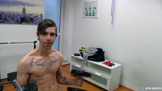 My house in Prague is full of things that don't work. It's getting annoying but I'm not exactly a do-it-yourself guy, so I let it pile up until it became unbearable. This was the day I wanted to fix everything, and I was not looking forward to it. That's why I went for a little walk to gather my strength. Maybe I would meet an excuse to postpone the whole thing for a few more days... That excusee had a name. Mara was a young electrician I met on the way home. The guy was busy to get to his family, but 2 000 Crowns convinced him to come with me and help. He didn't do much. As soon as he saw my fitness equipment, we started talking about lifting and I paid him to show me some of his moves. Suddenly he was naked and working his ripped body. I got a boner in no time and that was the only thing in need of fixing.