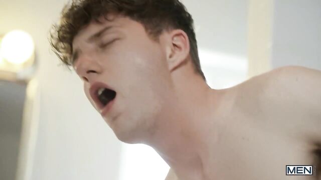 Blonde hottie Wesley Woods is cranking it in his living room, but when his friend's kid brother shows up at his door looking for a place to stay, he happily rolls out the welcome mat when he realizes its curly-haired cutie Cameron Parks. Wesley gets an eyeful of the fit younger dude when he catches him changing in the living room, and when Cameron sees Wesley's cock in the shower it's on. The two horny men fuck in the bathroom, Cameron riding Wesley's thick dick and moaning. The pair switch to the bedroom where they can really get down, Wesley finger-fucking Cameron's hole before he lets the blue-eyed sweetheart ride him until they're both ready to bust.