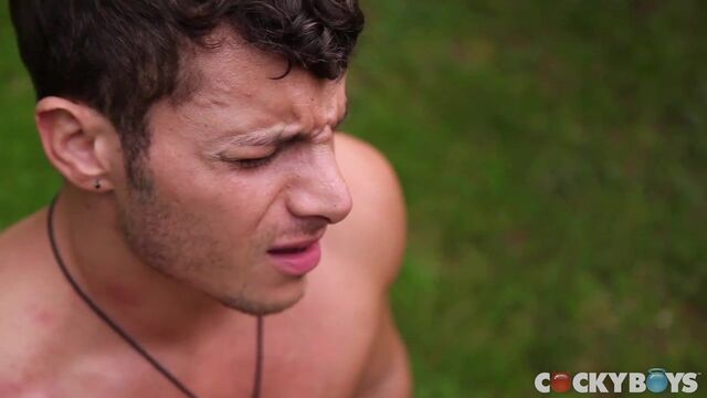 We haven't seen Ricky Roman in a while here at CockyBoys, but that's because he's found himself a boyfriend! His name is Michael, a dark and handsome stud with a gorgeous smile and impeccable body. He's the perfect guy for Ricky, and together they make each other want to be better people. As Ricky says himself, "He gives me fuckin' butterflies!"They first met at a party and soon became inseparable... until Mikey (as Ricky calls him) announced he was moving to Los Angeles. After a string of unsuccessful long distance relationships, Ricky was wary of committing. But through Skype dates and multiple visits, they found a way to make it work and have been in love ever since.Mikey was originally a webcam model to make some extra cash while working and studying full time, but he never considered adult film until he met Ricky. So as a way to express his love, Mikey decided to make his hardcore debut with Ricky. There's nothing amateur, however, about the way the guys interact -- the kissing, the blowjobs, the rimming, the fucking -- it's all real chemistry developed over the course of their relationship.Ricky loves getting naked outdoors, so the guys started jerking each other off and exchanging blowjobs on the lake shore next to a very public highway overpass. But as things heated up, they decided to move to a more secluded space in the woods where Mikey pounded Ricky in several different positions while they sweet-talked the entire time. After Mikey climaxed on Ricky's lower back, he did Ricky the sweet favor of jerking off his cock for him until he came as well. Now that's an example of true love!
