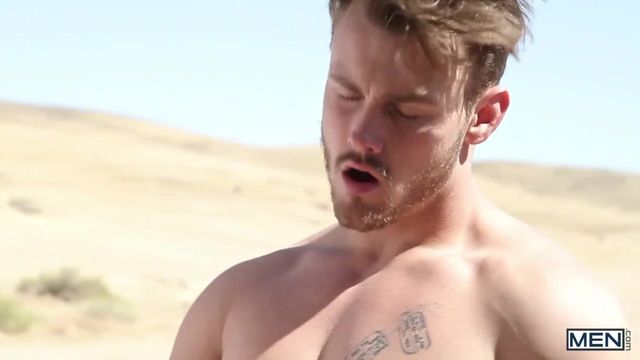 Jake Ashford is let go by the authorities in order to help track down Trevor and Jacob. The three outlaws strip down in the desert and get it on as they may never have another chance. Jake takes Trevor’s cock in his mouth as Jacob preps his dick for a good sucking. Trevor enters Jake’s hole first, who then switches off for Jacob.