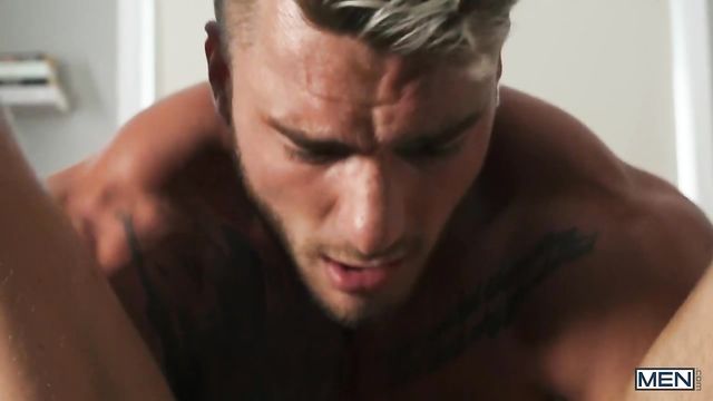 Tall athletic hunk Drew Dixon paid top dollar for his two on one massage and when his masseurs show up late he's furious. William Seed and his colleague try their best to make it up to Drew, but the brown-haired dude won't quit his complaining. When Drew tells William to get really deep with his massage William takes it to heart, shoving his thumb into his tight hole. The blonde beefcake doesn't stop there, sneakily fucking and stroking Drew behind a dividing curtain while his colleague is none the wiser. The two muscular men grope and grind, getting hot and heavy as William jackhammers Drew's hungry hole. William gives Drew the hole-stretching ass pounding of a lifetime, making him beg for more as the tattooed super stud plows deeper and deeper into Drew until they both blow their thick loads all over the parlor.