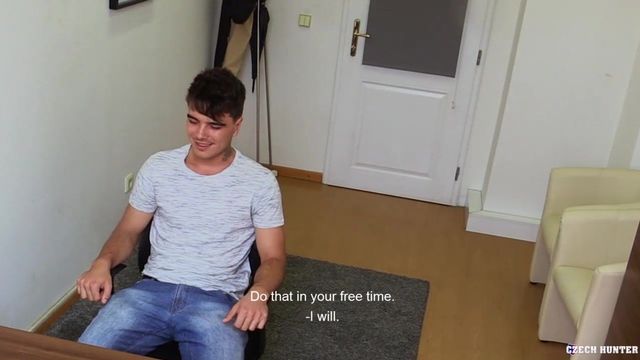 - Description: A very relaxed and chilled-out young guy came to my office looking for a modeling job. Well, that was the best thing he was able to come up with. I doubt he thought this interview through very carefully... Eventually, he chose an IT job because he had some previous experience in coding. The work was pretty sweet, so the guy was really bumped about the mediation fee he had to pay first. 5 000 was a lot for the boy as he spent all his savings on traveling abroad. He didn't mind undressing, so we made a deal. What could possibly go wrong for him? Initially he kind of hated my idea of fun, especially when I stretched his ass wider than it had ever been before. He moaned quite a lot and complained about the size of my cock but what was I supposed to do? I paid for entertainment and I was going to get it.