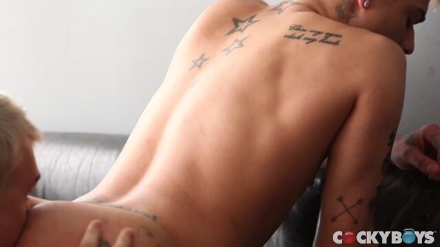 Mickey Taylor might be new to CockyBoys, but he's already established himself as a huge star overseas. With his sleek tattoos, piercings, and bleach blond hair, he fits right in with the rest of our guys. There was one CockyBoy Mickey particularly had his eye on, however, and that was Frankie V. When they first met each other, it was almost like watching a reunion of twins separated at birth!In person, Frankie and Mickey both have a rough exterior shielding a very sensitive interior. But that's what makes them click so well together. Initially, they bonded over their love of music but quickly found out they had some amazing physical chemistry. They couldn't stop making out with each other!After swapping long and sensual blowjobs and rimjobs with each other, Frankie was ready to give Mickey a proper CockyBoys initiation. He pounded him hard up against the couch from the front and from behind before Mickey finally got on top and blew his load while riding Frankie's cock! A short while later Frankie shot his load all over Mickey's face, while Mickey couldn't stop smiling.Enjoy, Jake Jaxson