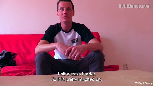 - Description: It was indeed a surprise for me to see that guy´s friend coming in. I was still naked but even though I just had a great cum-shot the idea of fucking his room-mate was an instant turn-on. I told the other guy to leave and continued with him. Obviously he knew by now about the kind of deals I am offering. And he had some time to think about it... and now, as he himself is asking for it I should have an easy game. We started to talk about his debts. He told me that he was crashing a friend´s car. And the car was - of course - not ensured. All he was asking for was 25000 CZK to repair the car. I offered him 30000 CZ to keep him motivated. I could see from his eyes that somehow he was even happy to get rid of the debt but on the other hand not sure what he was about to do...