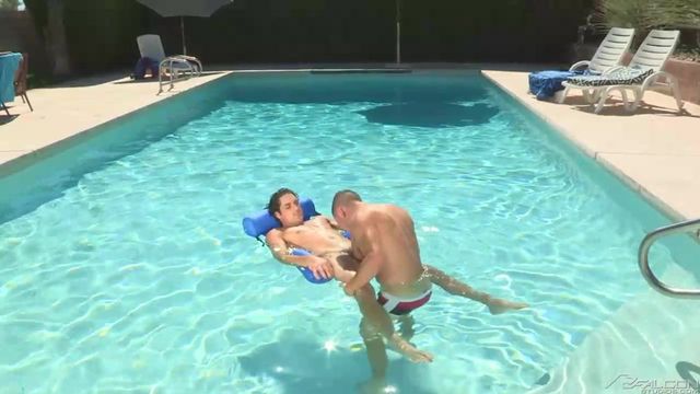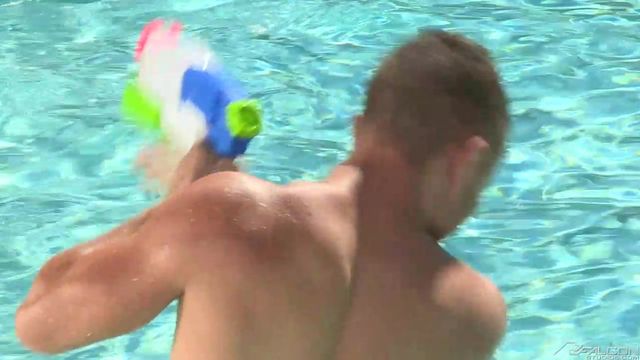 Jack King and Colt Rivers are horsing around in the pool, blasting each other with their high-powered water guns. The playful competition awakens each man's burning lust, and Colt begins by giving Jack a deep blowjob on an air mattress. Bright sun illuminates Jack's glistening treasure trail and water laps his thighs while Colt squeezes his balls and sucks his cock. The crack of Colt's ass, peering out from the top of his trunks, incites thoughts of fucking. Back on dry land, Colt lies on his back and spreads his legs. Jack can see in Colt's eyes how desperately he wants to get fucked, and Jack is the man to give it to him! As Jack's cock slides into his hole, Colt curls his toes and spreads his cheeks for maximum penetration. They switch to doggy style and Jack's low-hanging balls slap Colt's ass with every thrust, punctuating the arousal. Ready to shoot, Jack towers over Colt's reclining body and pumps out streams of cum that echo the jets of their water guns, while Colt matches him drop for drop.