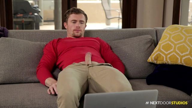 As Markie More cracks open fellow roomie Arad's laptop to print an email, he discovers something he was not expecting. Upon load up, a video of Arad begins streaming, and Markie realizes his roommate does cam shows for money. Watching Arad as he shows off his muscles for the camera, Markie forgets all about the email and instead unzips his pants and pulls out his cock. Stroking himself, he fantasizes about the possibility that his roomie might not be so straight afterall, and he gets lost in his fantasies, so much so that he fails to notice Arad coming in and catching him.Arad is understandably pissed at the breach of privacy, and Markie is obviously embarrassed that his cock is still hanging out and getting even harder as Arad tells him all about the camming he does for money to pay the rent. Markie touches Arad's knee and he pulls away, so Markie offers Arad the chance to skip rent altogether, and suddenly, Arad is more than willing to play nice.Whatever. Markie doesn't care if it means he gets a taste of that sweet action, and he starts at the bottom working his way up, taking Arad in his mouth and sucking him down to the base, back up to the head, before gagging on it and repeating the whole thing. Markie sucks Arad hard as a rock, as Arad fingers Markie's sweet hole, flipping him onto his back on the sofa to eat him out and moisten him up for Arad's hard cock. Once he's good and ready, Markie mounts Arad's cock, bouncing up and down on it as Arad gives his firm ass a hard smack. Arad flips Markie over into missionary and pounds away as Markie strokes himself to the brink of orgasm, but Arad has saved the hardest position for last, turning Markie over one last time and fucking the absolute hell out of him as he strokes his dick, launching his load onto the ottoman below as Arad continues to go at it, pulling out at the last second to blast his roommate's chest with a powerful load that should be good for at least 30 days of rent free living.