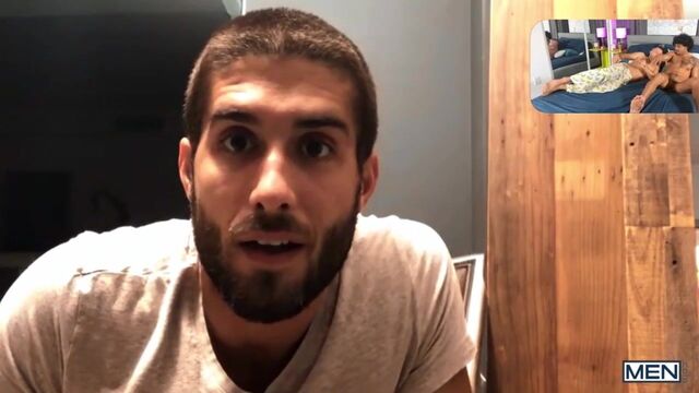 Lucas Ellis wakes his man Valentin Petrov with kisses on his neck and shoulder and a hard cock against his ass because he's horny, but just as the guys start kissing, Lucas gets a call from his friend. Valentin decides to sneakily suck Lucas's cock while he talks on the phone, but when his buddy figures out what's going on, he asks to switch to a video call so he can watch. He tells Lucas to play with Valentin's ass while the bottom sucks his big cock, then watches as Lucas spanks and rims him before fucking him spoon. The guys put on a show as Lucas fucks Valentin doggystyle, then the bottom takes that big dick for a ride. Lucas sucks his man's cock and takes a sticky facial, then it's Valentin's turn to get a hot load in his face!