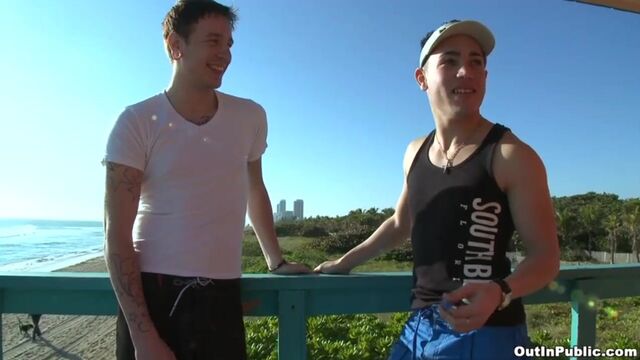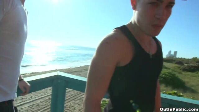 - Description: In this week's Out in Public update we're out at the beach with the homie Seth and, by the looks of it, everyone's at work cuz the beach is dead. No one in sight til we saw this little lifeguard "on" duty, lol. So we approach him and I notice that he may be a little gay, so I go ahead and offer him some money to show my boy a good time... and guess what? lol he takes the bait and does exactly that: shows my boy a hell of a time.