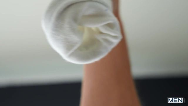 Theo Brady's excited to try out his new VR game, but when his roommate Finn Harding spots him wandering around in his underwear grabbing at imaginary poles, he pranks his buddy by taking his cock out and letting Theo play with it! Finn heads into his room to jack off into a sock, and when Theo comes in looking for stuff to wash, he picks up the sock and gets a face full of Finn's load! Theo wants the D, not just the cum, so he rides Finn reverse before giving him a sensual blowjob. Finn fucks Theo missionary before the twink asks to get pounded doggystyle. Theo orgasms as Finn penetrates him from behind, then Finn fucks the bottom in piledriver and cums in his gaping hole!