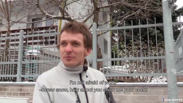 - Description: It finally started snowing in Prague, it was about time. I met my latest fuck toy as he was clearing snow off a pavement. Michal was a resourceful young man. As a second job he was available to anyone who needed anything done around the house or garden. He didn't charge much but it was a nice way to improve his family budget. It gave me an idea. I hired him to help me clear snow, but I had entirely different plans, of course. When I told him what I was really after, he was a bit surprised. Thank god he agreed and followed me inside. Michal used to do gymnastics, so his body was very good looking. I'm pretty sure his family members would be shocked to see him enjoying our time together like this. It almost felt like he would do it for free had I asked. What a crazy afternoon this was.