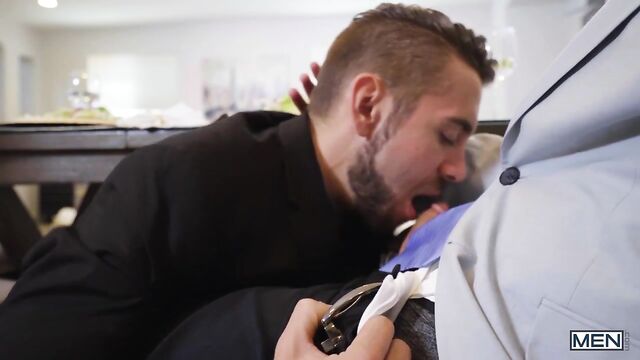 Dante Colle is here to walk you through the anatomy of a Men scene - from the conflict and set-up right through to the sex. Dante finds himself in a classic scenario: his boyfriend has invited his colleague, Jesse Prather, over for dinner to discuss banal business matters. Of course, this gives Dante the perfect opportunity to seduce Jesse and fuck him right under his oblivious boyfriend's nose. Dante, though, wants to get things just right, so that means pausing the action to try multiple seduction approaches and outfits. With his ability to break the fourth wall, Dante is here to guide you through the various methods and mishaps that come with a classic cucking.