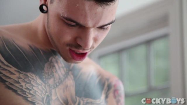 Asher Hawk is back! And this time he's bringing a buddy with him - Jo Diamond. Jo is exactly what you see when you try to picture what a true Cockyboy looks like - rock hard abs, all tatooed up, huge uncut dick, a quiet yet strong personality, and so much fun to be around! With that being said, it was understandable why Asher couldn't wait to play with Jo and get his hands on his cock. After first slobbering on it for a while and playing with Jo's foreskin, Jo was ready to return the favor and try some of that Asher beef everyone has been begging for since we first saw him a year ago. These two were in no rush to go anywhere and they were clearly having fun exploring their bodies and seeing how deep their cocks could go into the other one's mouth. But that was just the beginning. As we all know, Asher isn't done until his hole has been fucked and Jo was ready to do just that! By the window, on the couch, on his back, or standing up... it didn't matter. As long as Jo's cock was up Asher's hole, they were in heaven. Finally, Asher gave in to all the pleasure and blew his massive load all over his chest. It didn't take Jo too long to follow his example and shoot his load all over Asher as well. What a perfect way to spend a rainy weekend afternoon!Enjoy! Jake Jaxson