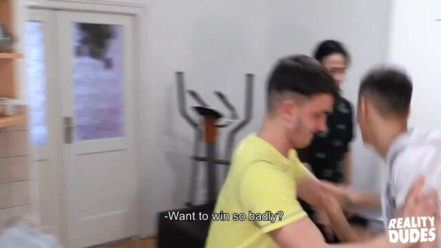 When one of these friends starts cheating at their poker game, his buddy gives him a pat down and finds the cards he's been hiding in his pants. But undressing the twink starts giving him a hard-on, making the cheater undress him right back to find what he's hiding. Their friend watches and touches himself as the twinks 69, and the top makes sure his pal isn't hiding any more cards by fingering his ass, then fucking him doggystyle and missionary. He opens up the cheating bottom's tight hole with his thick cock in doggystyle, then the guys jack themselves off until they cum.